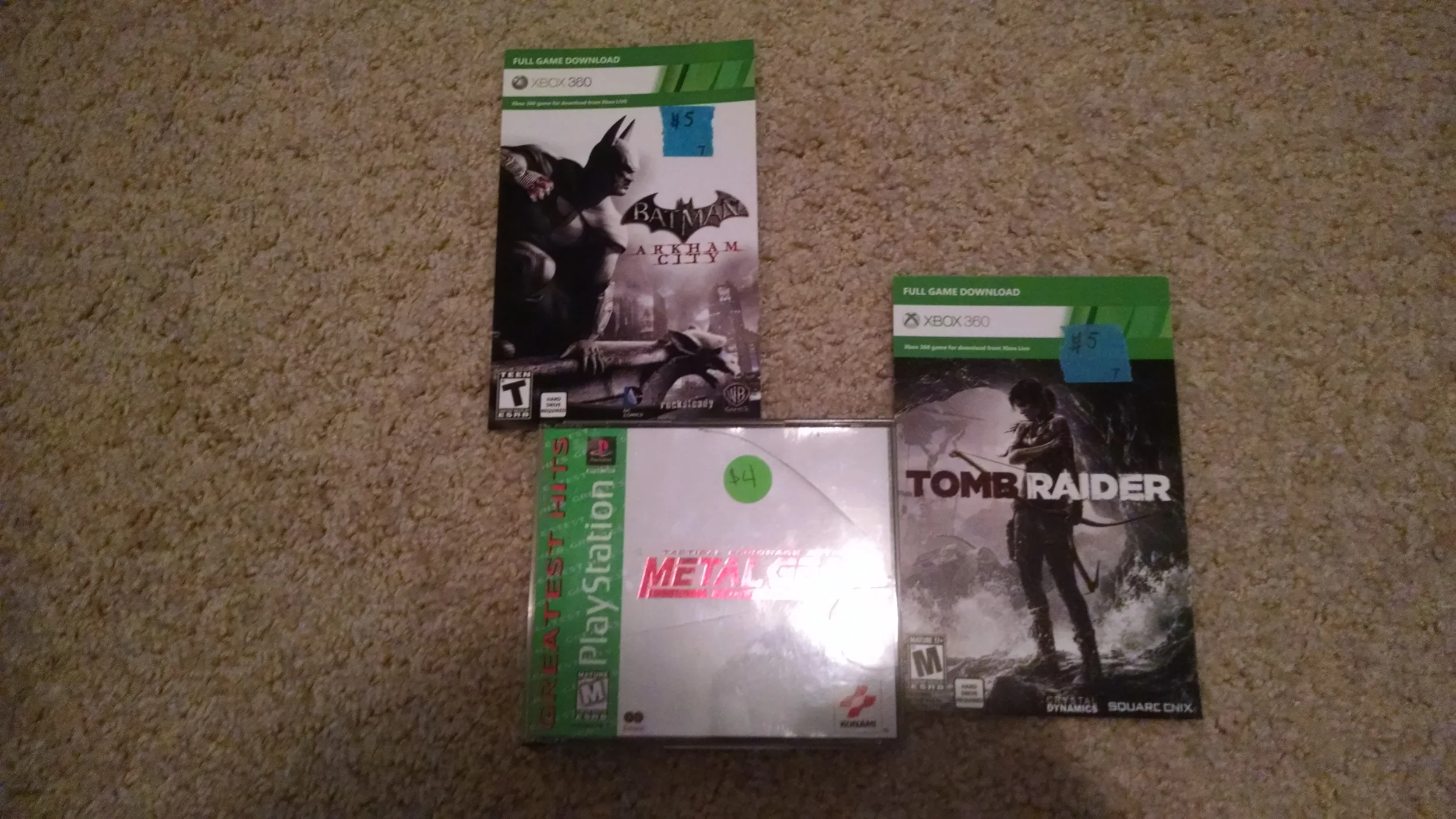 I hit a few more sales, most of them had overpriced PS2 games or old Wii games. By this point, it was after 9am and I was getting discouraged. On the way back home, I stopped at one sale that had listed 360 games. I recognized the guy from work. I grabbed digital downloads for Tomb Raider and Arkham City for 360 and I’ll probably give those away on the site.