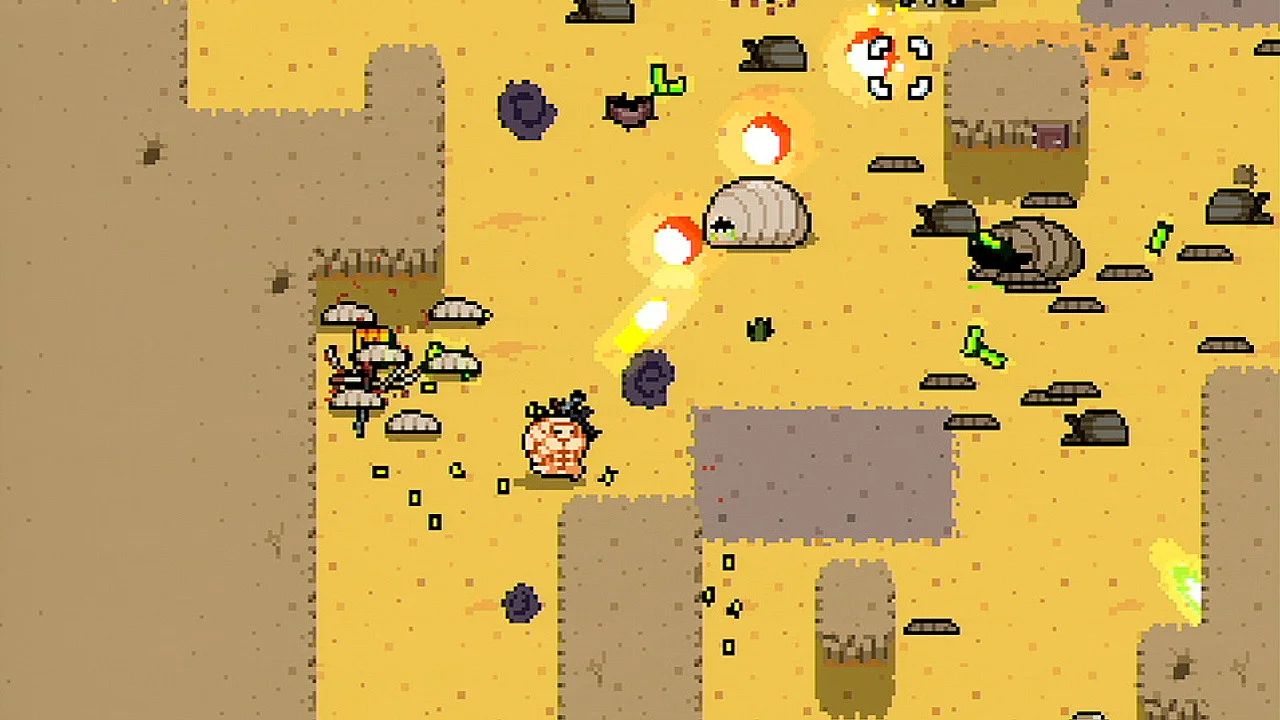 But with some practice I have gotten better, the selling point of this game is that every level is randomly generated every time. There are several characters gamers can pick from. Each have their own abilities some of these include telekinesis, starting with melee weapons, dual pistols, the ability to shield, to snare enemies, and the list goes on and on. I recommend the Chicken or Crystal for rookies. Outside of killing everything in the level and dodging enemy fire gamers will collect nuclear waste which will let them level up and pick a new random mutation. The mutations range from restoring all ammo and health, to increasing melee damage, or increasing weapons drops.