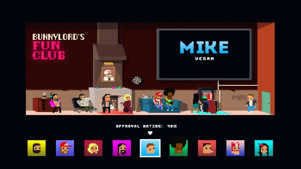 This game has a muddy plot. Well, there isn't really much of a plot. The Bunnylord has come back to the past from the future and wants to be elected as mayor of the world to save it. In order to show the populace he can be trusted, Bunnylord, in his purple glory, hires anti heroes to clean up the city.