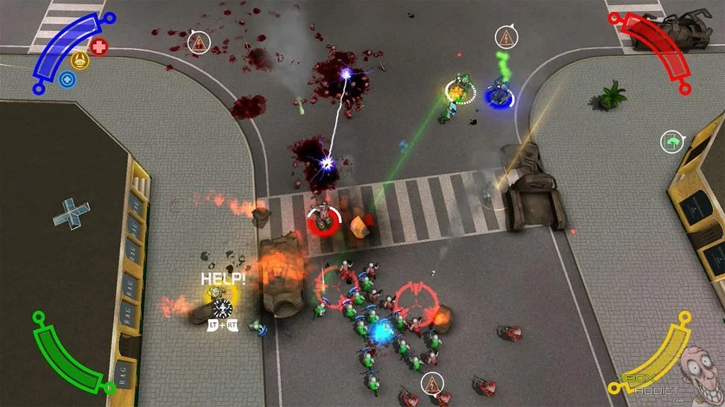 The graphics, sound and music are all fairly generic. Like most twin stick shooters, you play from a top-down perspective. The graphics are cel-shaded graphics that are not very detailed. Pretty much every stage takes place in the same city environment, which is a big disappointment. The music is as very plain and generic soundtrack, and it tends to repeat itself quite a bit. The sound effects are nothing spectacular but they get the job done.