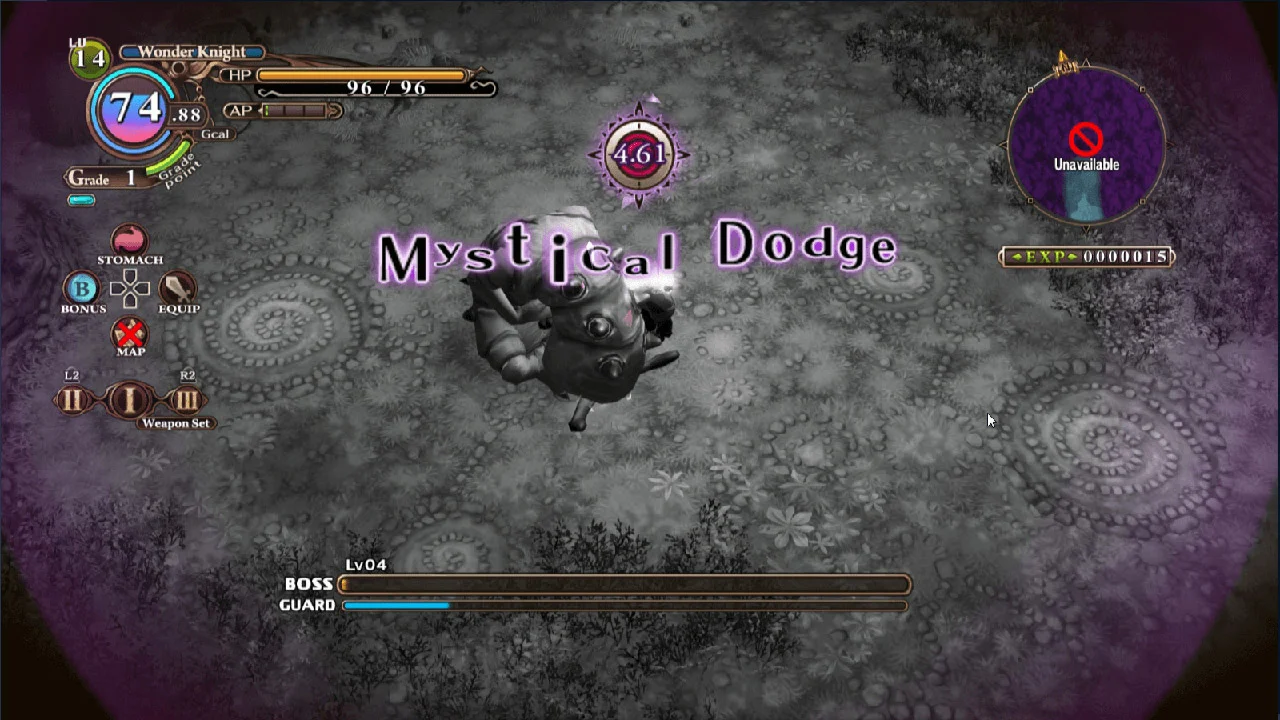 The very little strategy that I mentioned is a mechanic in the game called the GCal system. GCals are a time limit placed on the Hundred Knight in each area. Performing actions in the game such as attacking, running, healing, or exploring an unexplored area costs GCals, which drain down from one hundred each time the Hundred Knight enters an area. GCals are fairly easy to restore. The easiest way is by spending grade points earned in combat, which restore 10 GCals each. Grade points can be spent at any of the pillars that are found throughout each level, and can also be used to grant the Hundred Knight temporary stat boosts. The Hundred Knight can also consume nearly dead foes in order to regain a small amount of GCals, but doing so also fills his inventory up with junk. I found the GCal system to be a little annoying at times, but it also gave the game some strategic points and kept it a little more difficult.
