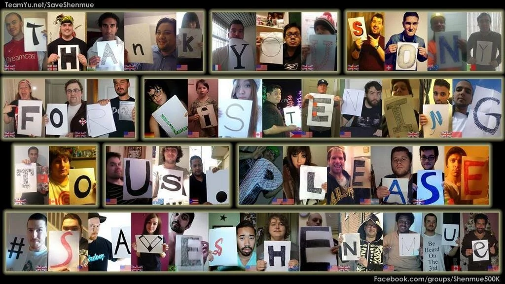 Here is a quote from TeamYu.net, the guys behind this campaign, "We chose social media as the platform for our campaign because it's a great way to gather support from like-minded individuals and keep our cause in the public eye. Previous attempts by Shenmue fans to appeal directly to Sega, by sending letters, emails, and even toy capsules, have been completely ignored. Private communication is too easy for corporations to sweep under the rug, because only the sender of each passionate request will know about it. But on Twitter, our campaign plays out in front of a worldwide audience. The first monthly #SaveShenmue Tweetathon of 2014 reached the news feeds of almost 3 million followers, so the longer Sega dodges the issue, the more awareness will spread amongst their wider customer base, who we hope will join in and support our efforts at TeamYu.net."