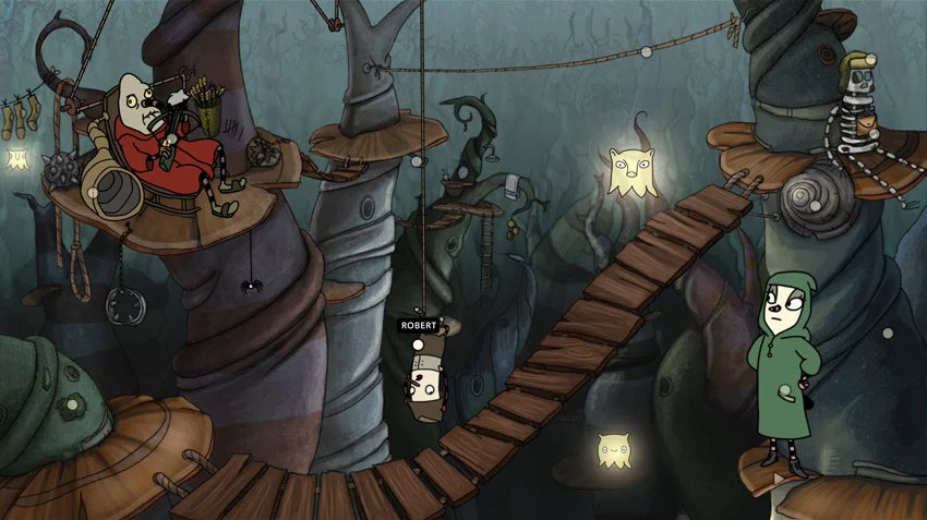 The story starts off with you, Robert, an Asposian with a deformity, chasing after a pigeon that stole a trinket from your bitter guardian. This is the first chance Robert had to get away from the monastery where he was raised, so he quickly leaps into action. Along the way, he meets a lot of interesting characters, like Laura. In Robert’s efforts to procure the trinket, he becomes infatuated with her, and she quickly becomes integral in solving the mystery that begins to unfold. Robert quickly uncovers his true origins, and why his deformity is actually very important.