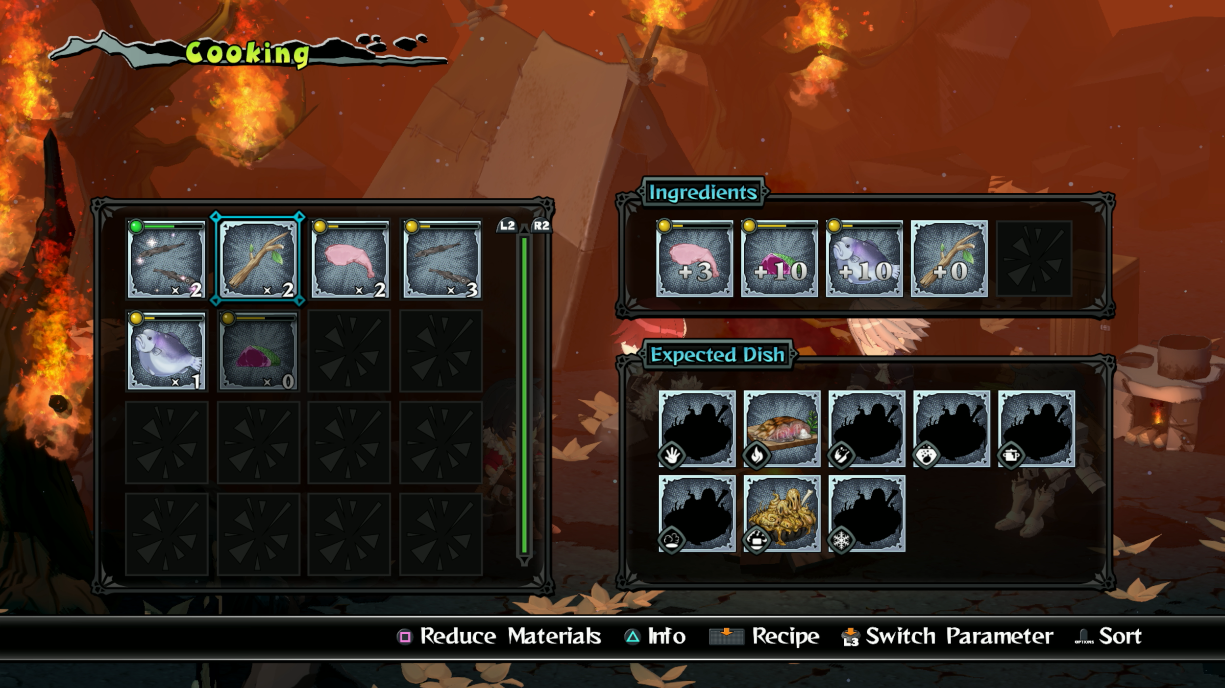 Along with the resting campsites between levels, the player has the capability to “prepare” individual food items collected while on the dungeon floor, directly from their inventory. This comes in handy because preparing the items boosts their stats without needing to finish the current level to arrive at a campsite first. But beware some snacks will apply a detrimental effect on the character such as sleep or paralysis that you may not notice before encountering the next enemy.