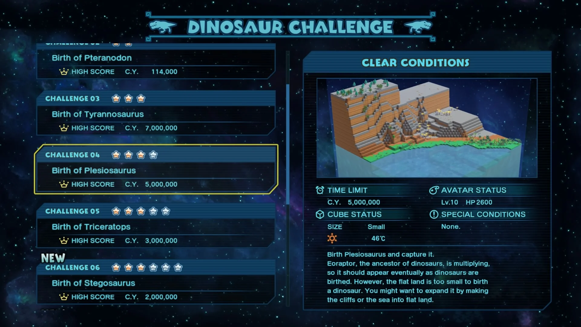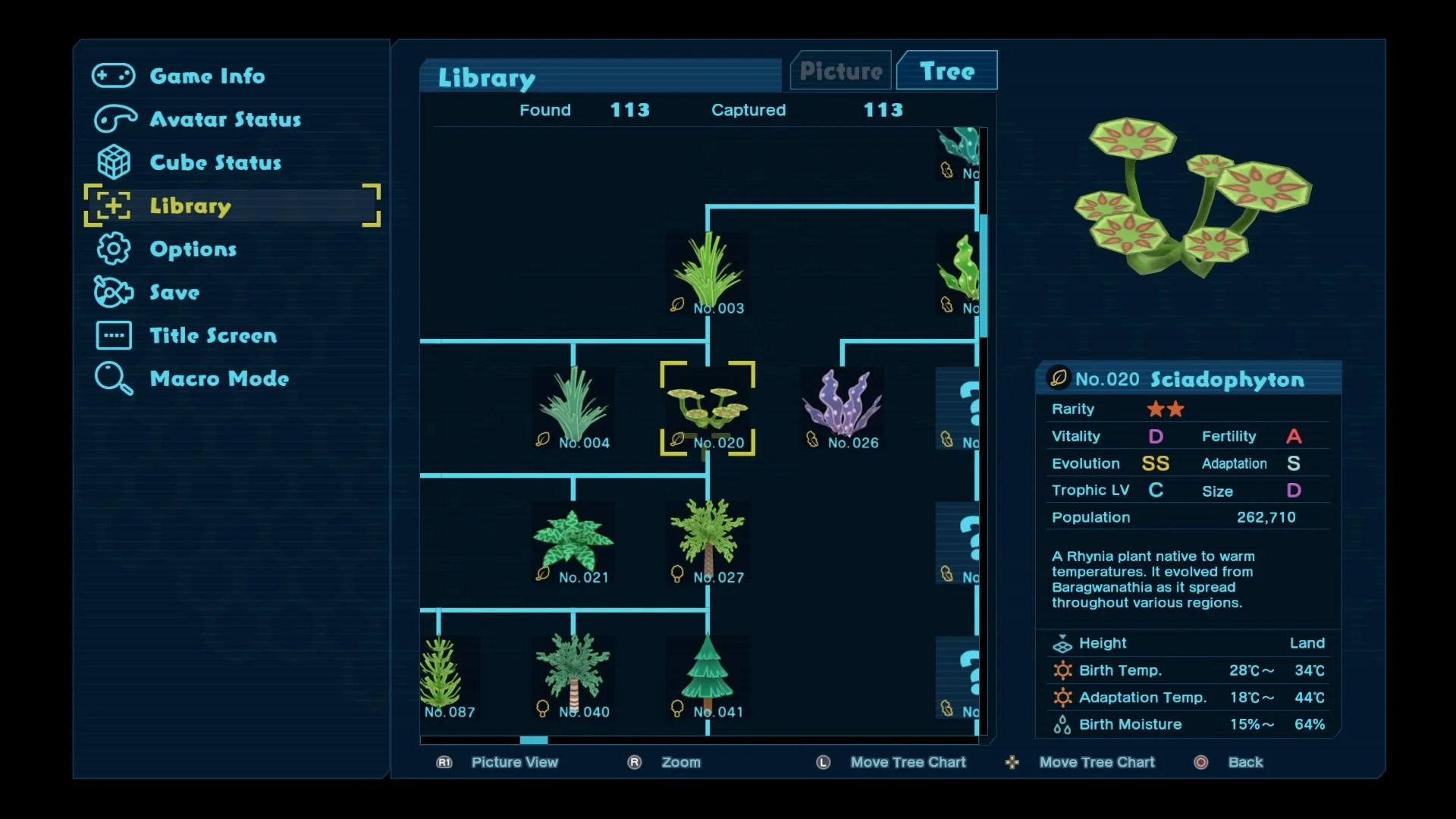 There is a storyline mode, where you slowly learn why you are doing what you are doing, but it really boils down to a list of achievements to tick off of a list. There is a challenge mode as well, giving you a goal to reach, such as create a specific species within a ceartain number of "years." It is neat to see your world evolve from simple protozoa to pterodactyls and everything in between, but the game has another achievement to reach instantly after every single one is reached, making them feel like rungs on a ladder rather than the "happy birthday" they expect each new evolution to be. When you see something new, you are to fly down to the world and "capture" one, scanning it so it goes into your record book. It will then keep track of what the conditions are for it to be born, evolve, and thrive. There is a basic chart form, as well as a full-on tree to help you know just how you got there.