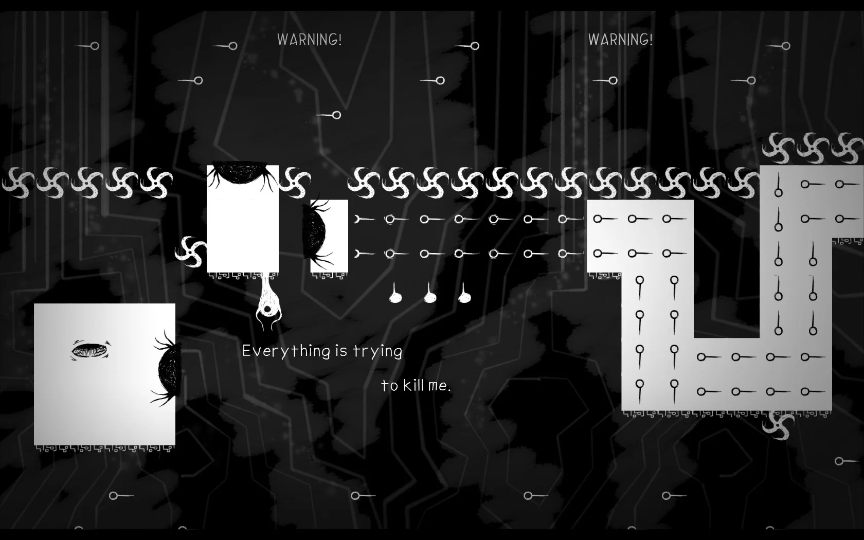 Sometimes, a game can just be odd black and white scratch art and the way to bring its concept to fruition is by forcing everything in it's world to try and kill you. Sometimes being as simple or as basic as a flash game forces you to look at the game, try to see what it says, and apply those things outward.
