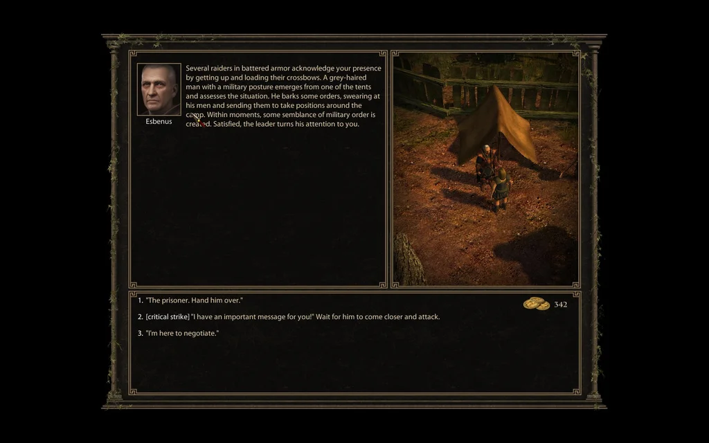 The thing that makes me absolutely love the game and come back to it again and again no matter how many times I die or screw up, though, is that the game is that deep. The game begins with a message that combat is highly lethal, and it would be better to negotiate your way through each situation. You can get through the first act of the game by only killing one person, or if you really want to see how low you can get your body count, you don't have to kill anyone at all (this won't make anything any easier). The game is incredibly open-ended, and even failing a quest in one way will give you options to succeed at another.