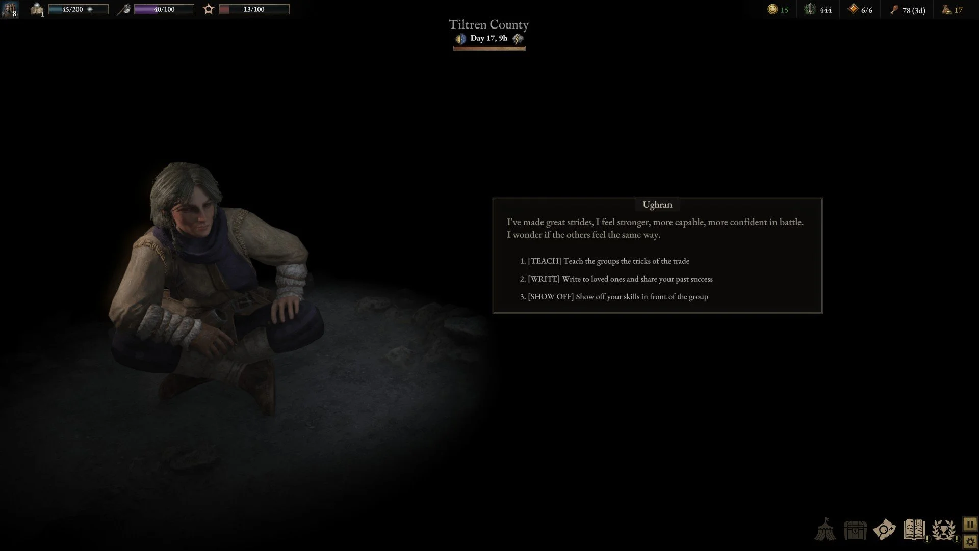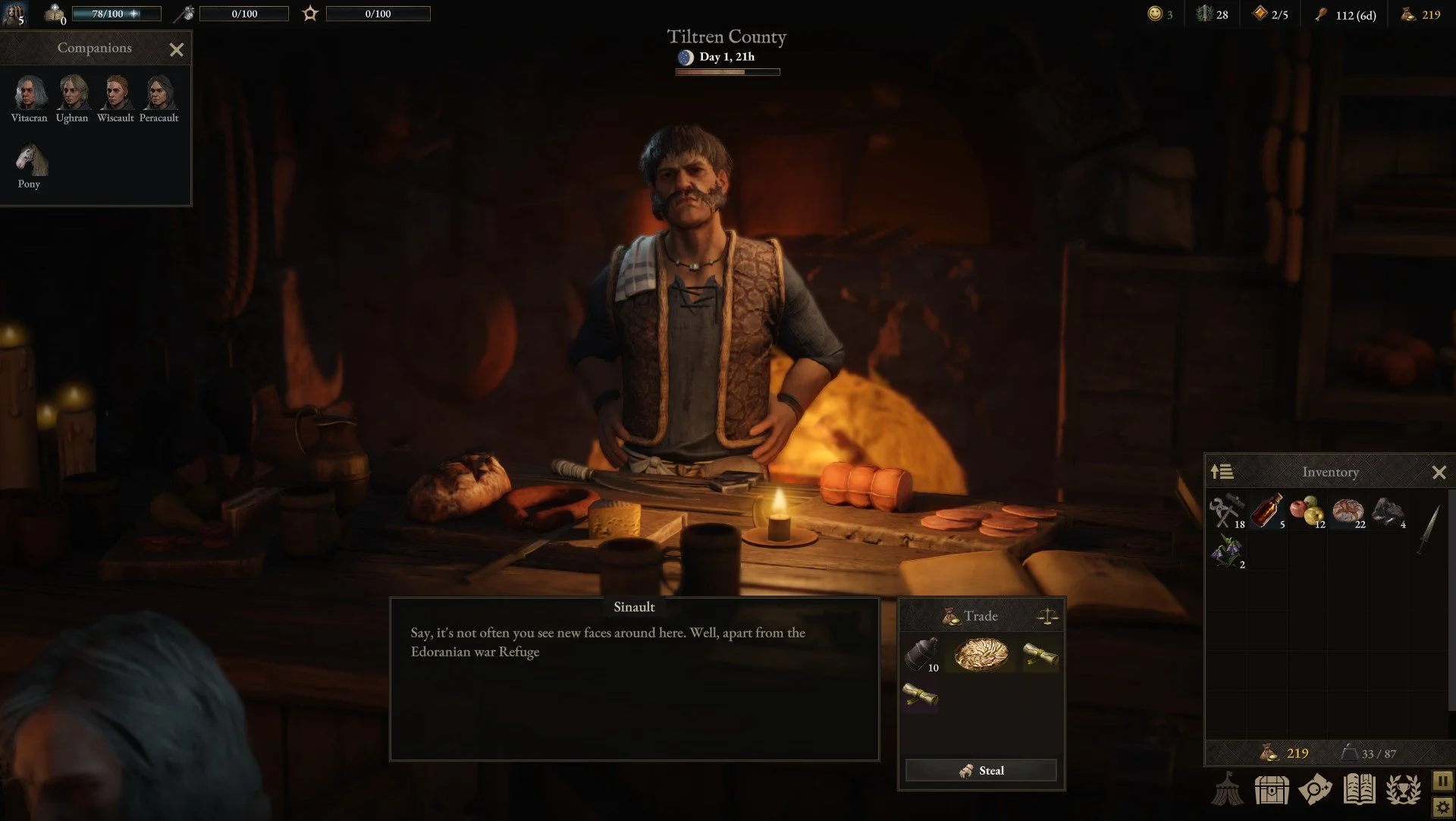 Which is fantastic, because the game is vast and open-ended. There’s tons to do in every overworld map of Wartales and tons of ways to do it, whether that’s trying to become a merchant and build up your fortune that way, or living the lives of ruthless bandits and employing all your cunning and skullduggery. Just about anything you do grants you experience points, and some problems have multiple solutions. The game doesn’t even push you in one direction or the other morally— while some decisions can be honorable or dishonorable, it’s more about who you side with and why than any greater system of morals. It’s entirely about what story you want to create. Wartales is as much a story generation system as it is a strategy game, and it offers you all the tools you’d need to create that story.